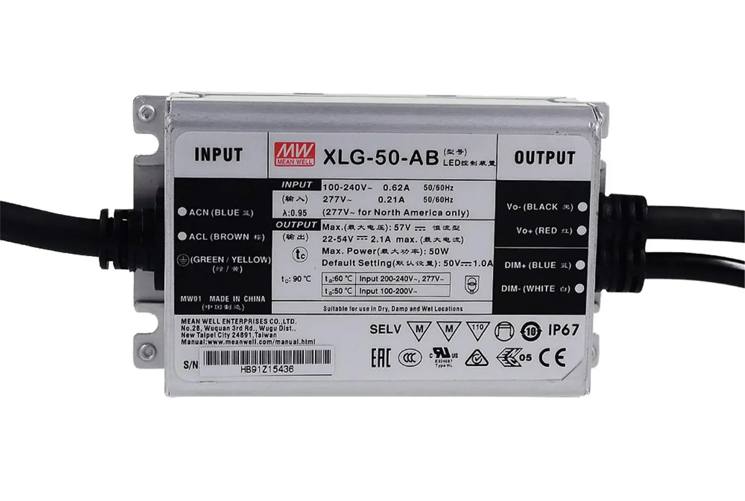 Поставляется в комплекте с топовым блоком питания MEAN WELL XLG-50-AB